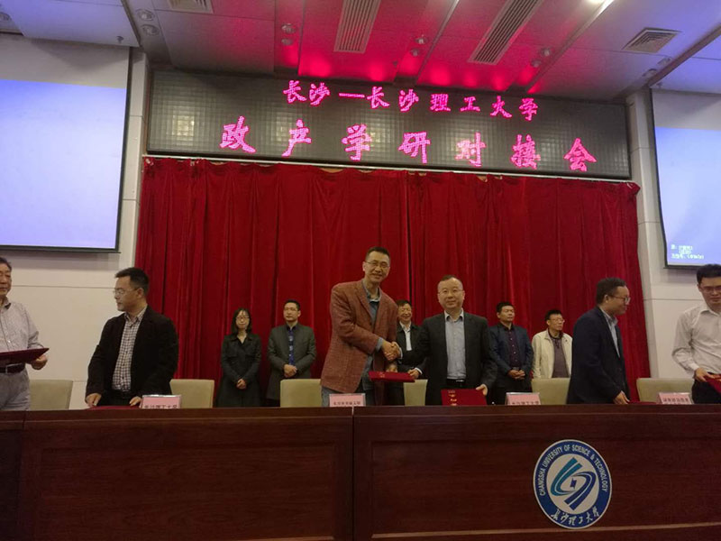 為進(jìn)一步加強(qiáng)長沙與高校的科技合作交流,加快高校的科技成果在長轉(zhuǎn)化,10月13日上午,“長沙-長沙理工大學(xué)政產(chǎn)學(xué)研對接活動(dòng)”在長沙理工大學(xué)云塘校區(qū)舉行。圖為我公司與長沙理工大學(xué)簽署對接協(xié)議。