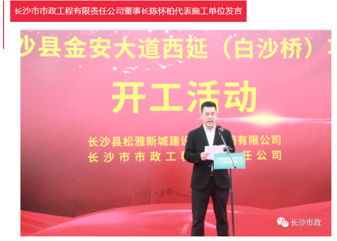 陳懷柏代表長(zhǎng)沙市政衷心感謝各級(jí)領(lǐng)導(dǎo)的支持和信任。他表示,長(zhǎng)沙市政將以高度的責(zé)任感和歷史使命感,運(yùn)用全新的管理理念,發(fā)揚(yáng)“攻堅(jiān)克難、開拓創(chuàng)新”的市政精神,秉承長(zhǎng)沙市政的“三個(gè)一法則”:從第一道工序起抓質(zhì)量,從第一個(gè)工作日起抓進(jìn)度,從每一個(gè)細(xì)節(jié)處抓安全文明施工。保質(zhì)、保量、按期完成項(xiàng)目建設(shè),著力打造精品工程、優(yōu)質(zhì)工程,致力金安大道建設(shè),助力長(zhǎng)沙縣大城崛起!